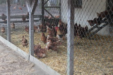 Im Stall sind erhöhte Sitzplätze zum Schlafen, Scharrraum mit Sand zur Federpflege und die Legenester. Pro qm leben 4-5 Hennen, Der Wintergarten ist zusätzlich. Das ist deutlich mehr als für Biohühner vorgeschrieben ist.